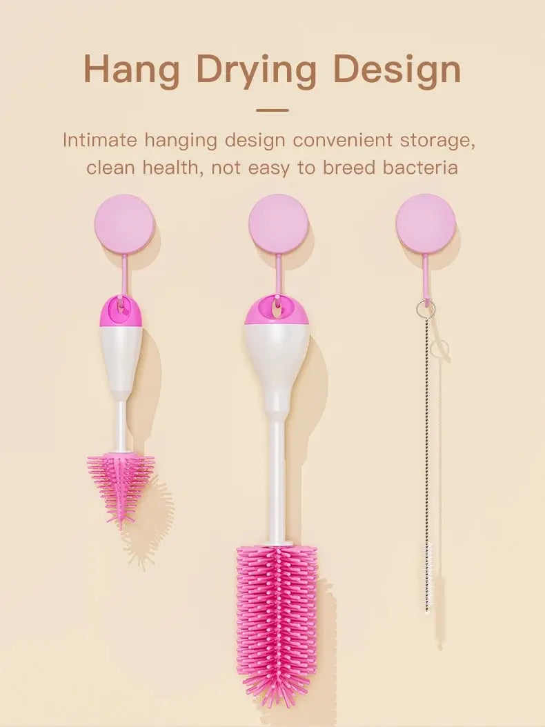 Acest set inovativ de perii 3 în 1 este perfect pentru mămicile care vor să păstreze biberoanele și suzetele bebelușului perfect curate. Realizat din silicon de înaltă calitate, acest set asigură o curățare completă și igienică, fără riscuri pentru sănătatea micuțului tău.