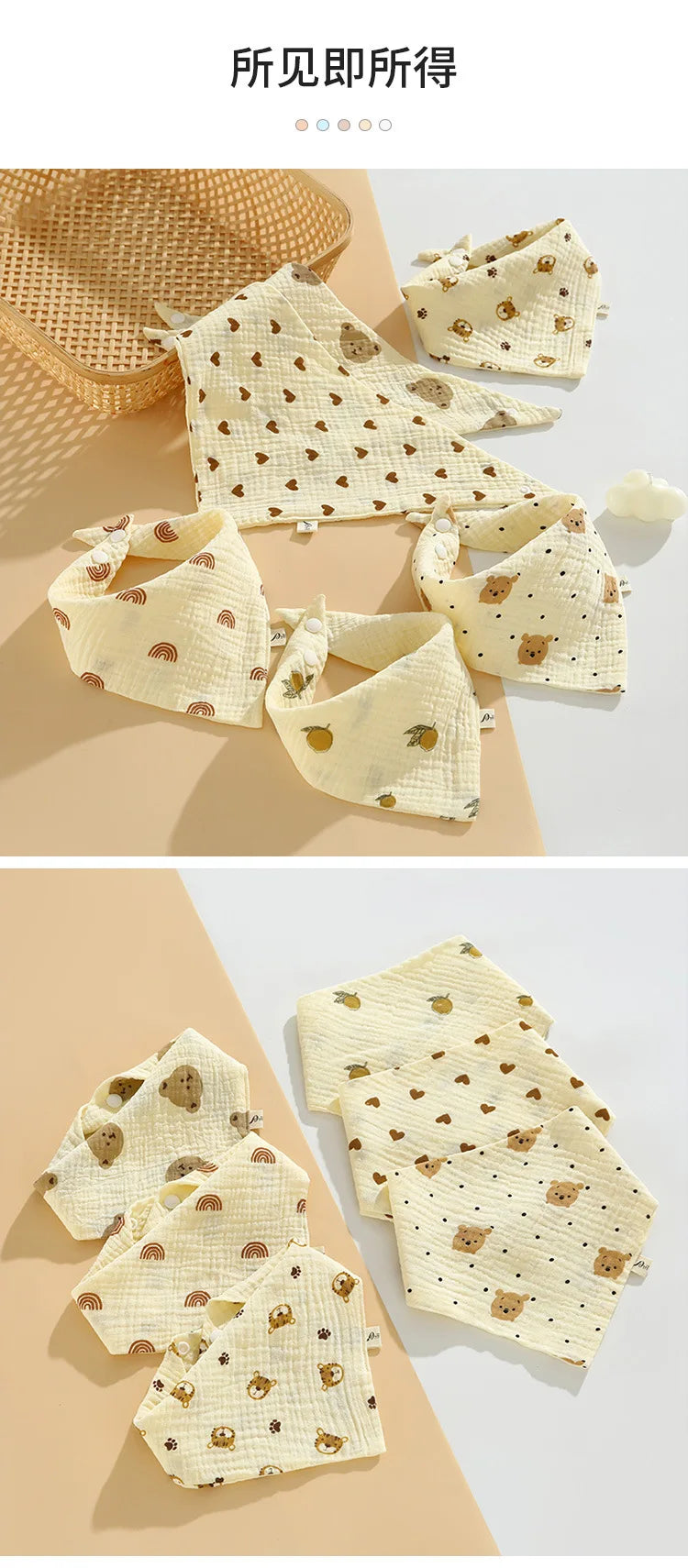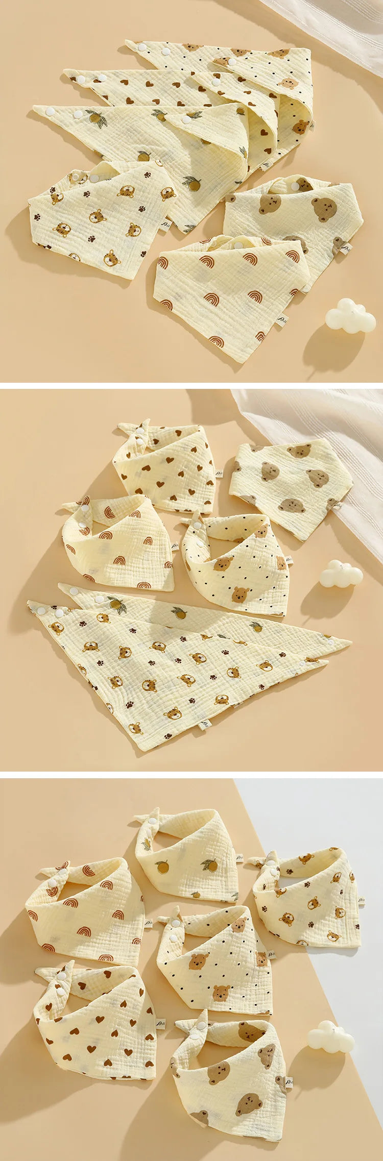 Aceste bave din bumbac muselină sunt perfecte pentru bebelușii între 0 și 1 an, oferind protecție excelentă împotriva salivei și murdăriei. Cu un design adorabil, aceste bave sunt ideale pentru hrănire și perioada de erupție dentară. Confortabile, moi și sigure, sunt un accesoriu esențial pentru micuțul tău!