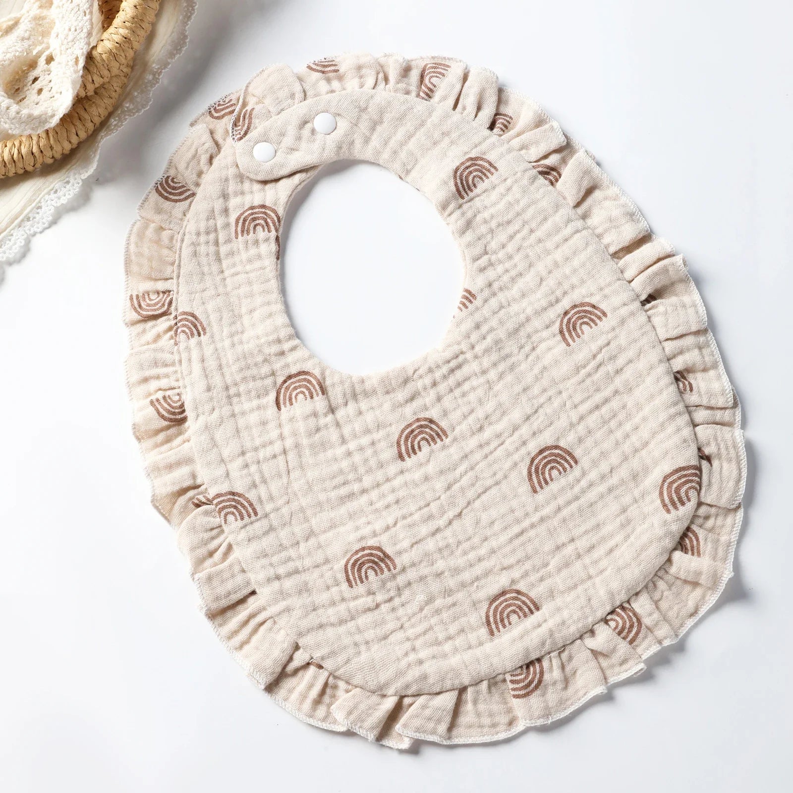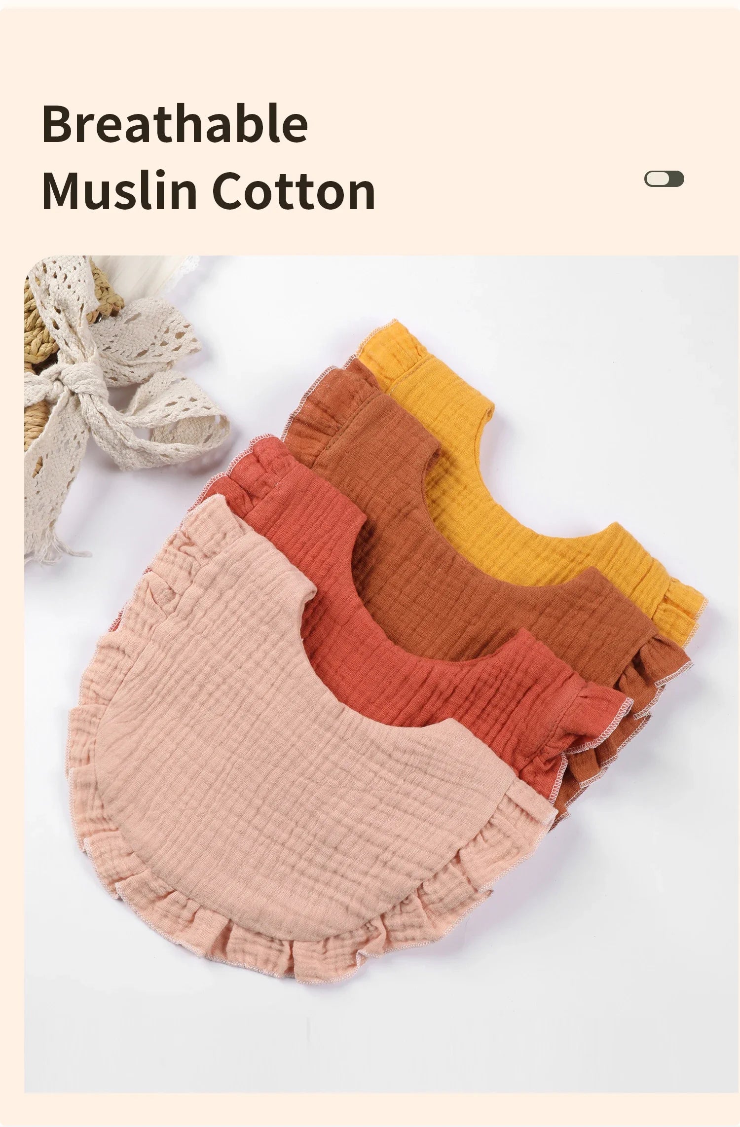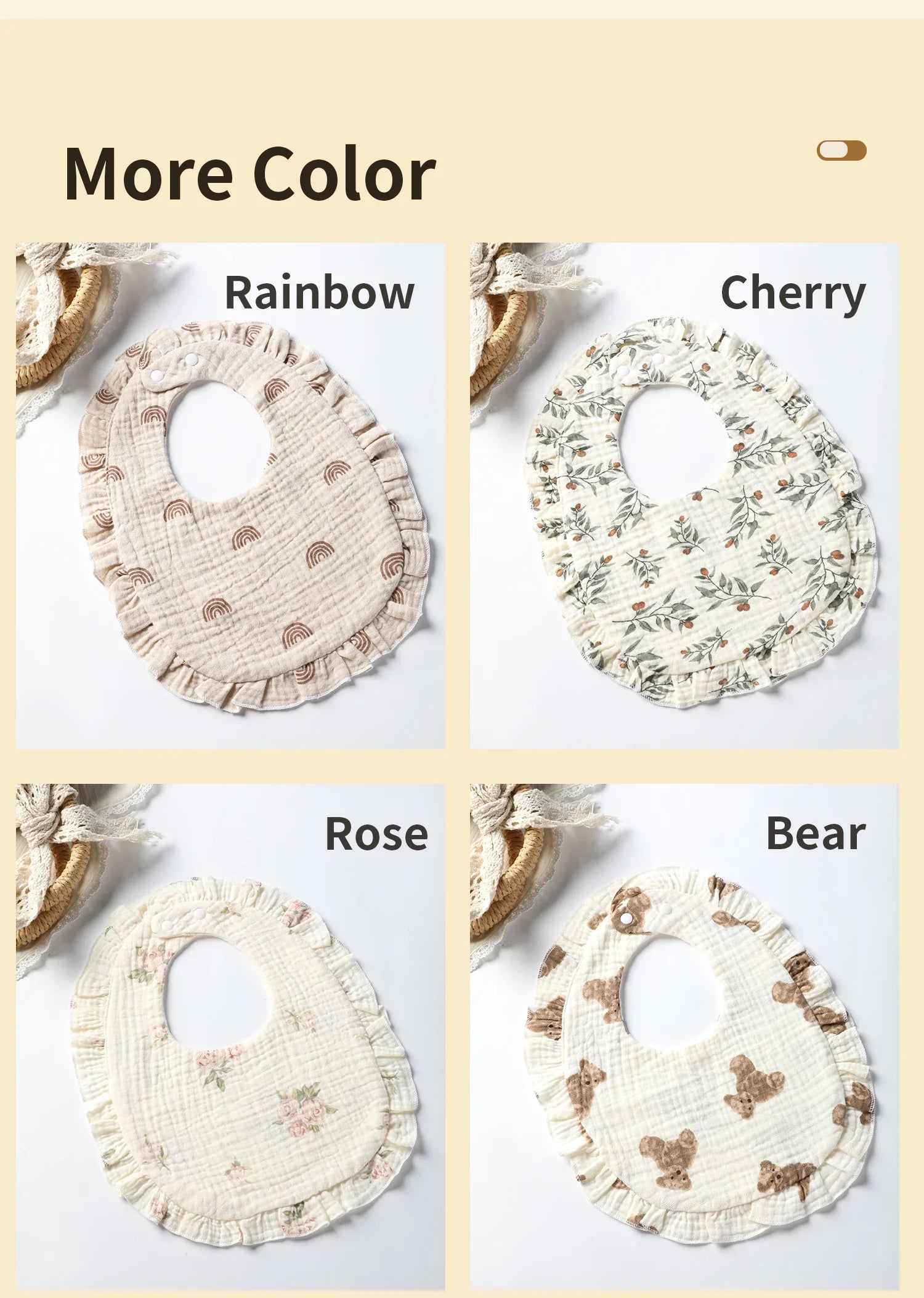 Bave din Bumbac pentru Bebeluși – Design Floral cu Dantelă și Volănașe
