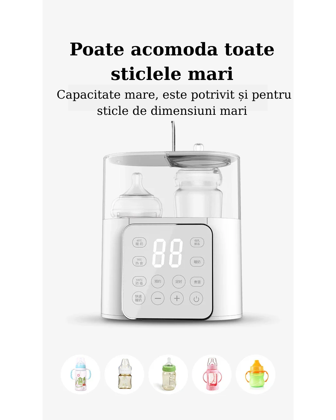 Capacitate: 2 biberoane simultan